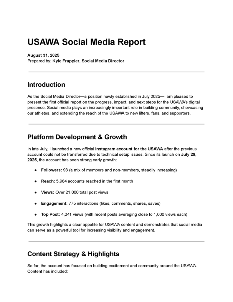 The annual meeting of the United States All-round Weightlifting Association was held on July 18, 2025 at 6:11 p.m at Angie’s Family Restaurant in Albany, KY. The President, Secretary, and Vice President were present.